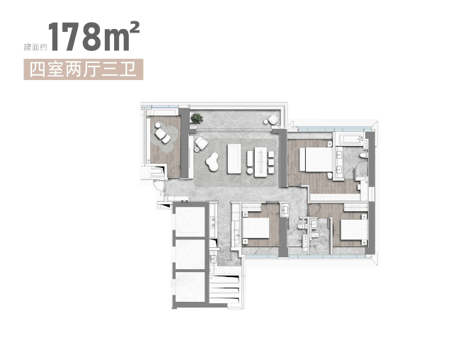 3栋(45F):3T3,135㎡(售罄)、178㎡