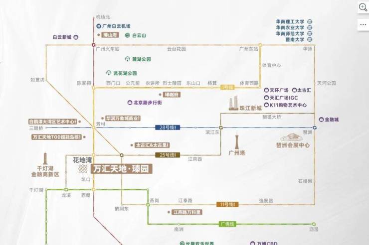 项目附近有花地湾TOD枢纽,1号线、25号线交汇换乘