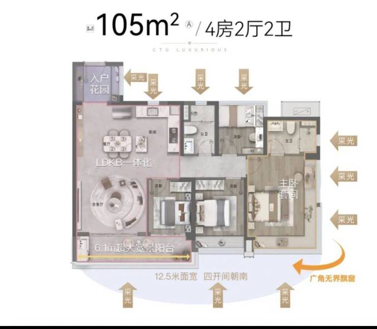 0.4超大窗地比,高于市场项目20%;形成巨幕采光面,更高采光性能。