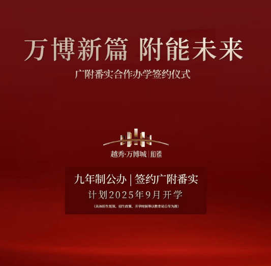 越秀万博城引入番广实验教育集团办学,首期建设了一所54班的小学和一所36班的初中,均由广大附中番禺实验学校具体管理。