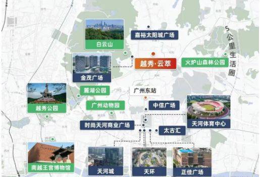 5公里范围内涵盖天河城、正佳广场、天环、太古汇、东方宝泰等广州顶级商圈,高端消费触手可及。