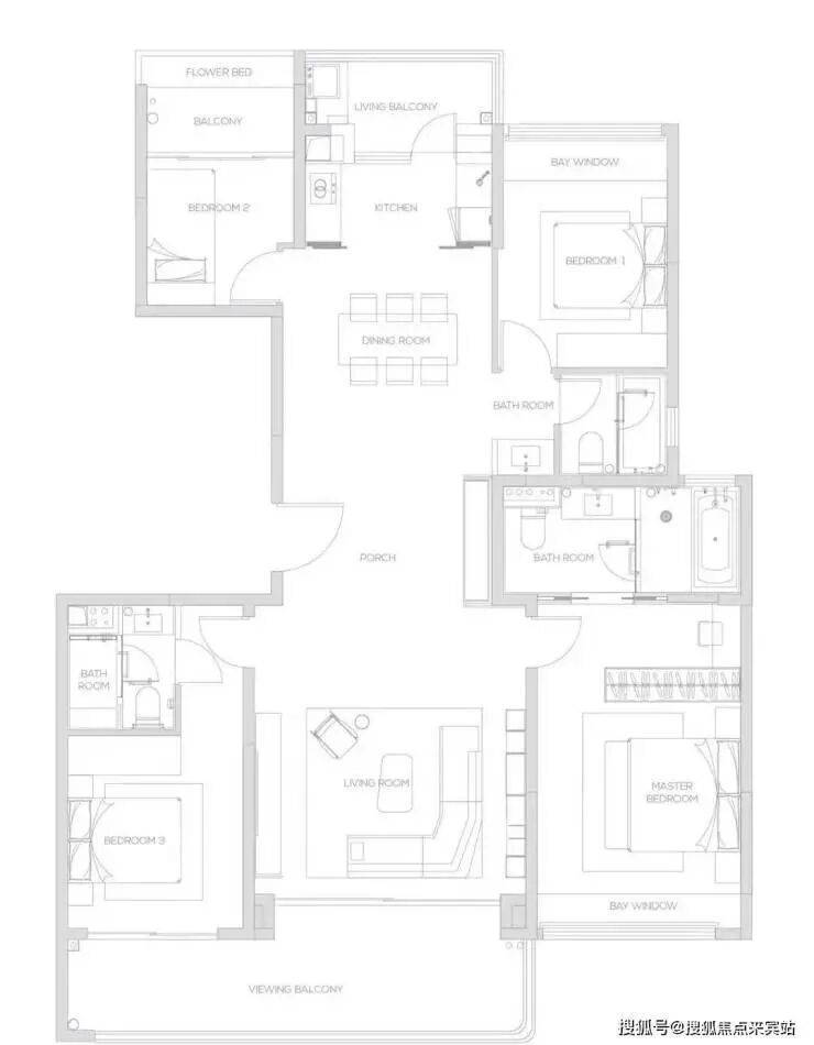 168㎡四叶草户型 四室两厅三卫