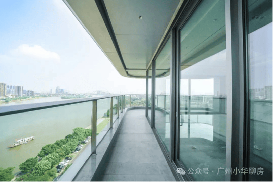 更震撼的体验,是当你步入阳台时。弧形玻璃的设计,让江景全画幅被你的视觉所占有,带来极强的视觉冲击力。驻足于此,你不需要去眺望江景,而是开阔的珠江直接将你环抱。