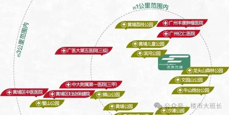3公里范围内,美林天地、山姆会员、宜家、盒马生鲜、鱼珠时光里等有现成配套,还有规划中的开市客、华润万象系商业、文冲东和双沙大型商业MALL