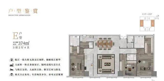毗邻江边文化公园与岭南风情街,漫步江边,惬享稀缺绿意,唯江景永恒。项目一线亲水邻江,270°环幕视野收揽珠水脉络,临窗而立,波光粼动,流转的风景为上层精神著写丰盈的篇章,一层一臻藏的稀缺,唯壹号私属。