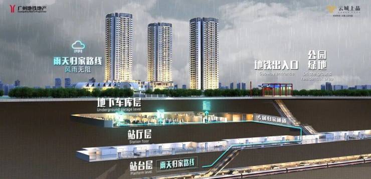项目与其他TOD项目最大的区别在于:广州地铁地产·云城上品规划了市面上地铁盘所少有的专属归家通道,与地铁站厅无缝衔接;