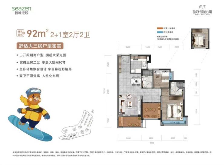 户型设计贴合刚需需求,主打76㎡、78㎡、92㎡三房及112㎡四房户型,其中76㎡、78㎡三房合计占总户数的65%左右,92㎡三房占总户数的20%左右,112㎡四房占总户数的15%左右。所有户型得房率均超过85%,二期户型得房率甚至超100%,设计合理,几乎没有浪费面积,空间利用率极高,其中76㎡南向三房为主推刚需户型,92㎡三房可享受更宽敞的居住空间,112㎡四房适配家庭成员较多的购房者。建筑品质方面,项目作为新城控股品悦系产品,遵循“品质空间,与人欢喜”的价值主张,采用安信、书香门第等一线品牌建材,外立面选用2种环保耐用材料拼接打造,兼顾耐久性与美观度,施工标准达到国家一级建筑施工标准,严格符合国家建筑安全规范,目前已为现楼交付,品质有保障。
