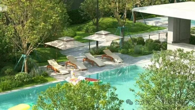 润府园林,有种穿梭在岭南山水之间的感觉,树种和落客区相呼应,听说以后都会移植到小区内部,水景地面的黑金沙石材,让水面显得格外清澈,能清楚看见倒映的树、山和天空。