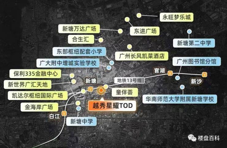 位于广州市增城区新塘聚宝路与丰华西路交叉口西北400米处,广州地铁13号线新塘站附近;占位大湾区黄金A字尖端、广州东部TOD枢纽中心,享十轨交汇(5地铁3高铁2城轨)环绕,轻松畅达全广州,贯穿广深等湾区核心城市;三大核芯功能区,三大千亿级产业集群,拥享湾区黄金资源辐射。