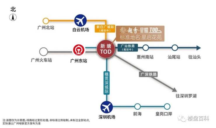 地铁——广州地铁13号线新塘站直线距离100米左右;新塘TOD汇聚地铁6号线延长线、16号线、20号线、23号线、28号线等6条地铁线;3条高铁(广深铁路、广汕铁路、京九铁路);2条城轨(穗莞深城际、新白广城际),1小时畅通大湾区;
