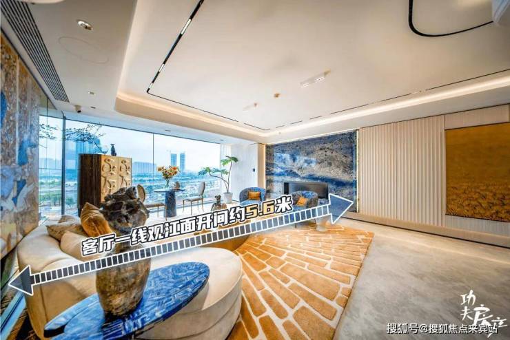 客厅一线观景面的开间宽度达到约5.6米,原生尺度就是这么大,将居住舒适度提升到大平层级的水准。