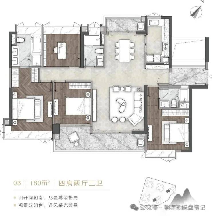 【A1-03】建筑面积约180㎡四房两厅三卫