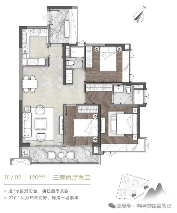 【A1-01/02】建筑面积约120㎡三房两厅两卫
