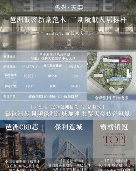 保利天奕・曦苑位于海珠区琶洲南区,是保利 2024 年 10 月以底价摘牌的 AH090402、AH090403、AH090404 三宗地打造的高端住宅项目,三宗地总建面 13.8 万㎡,总价约 59.01 亿元,楼面价为 4.25-4.3 万元 /㎡。