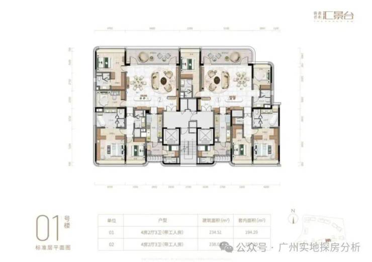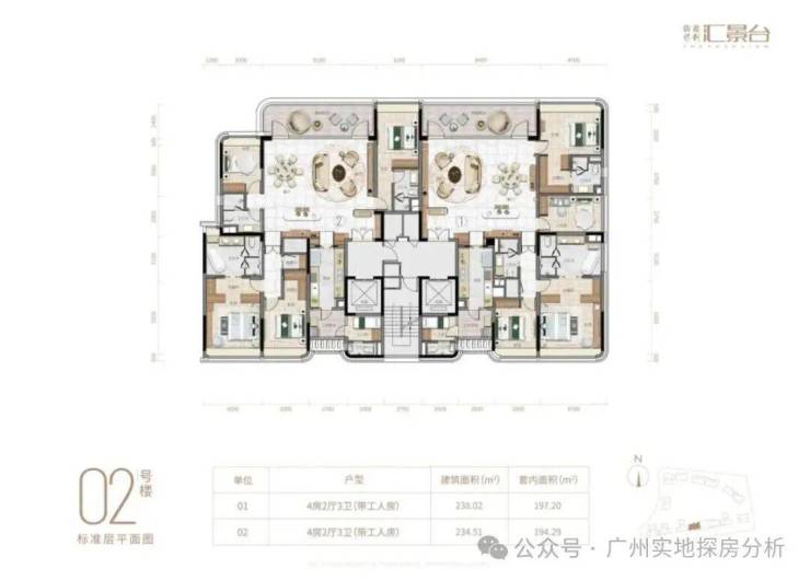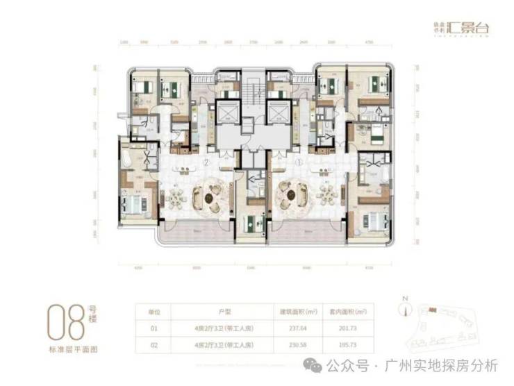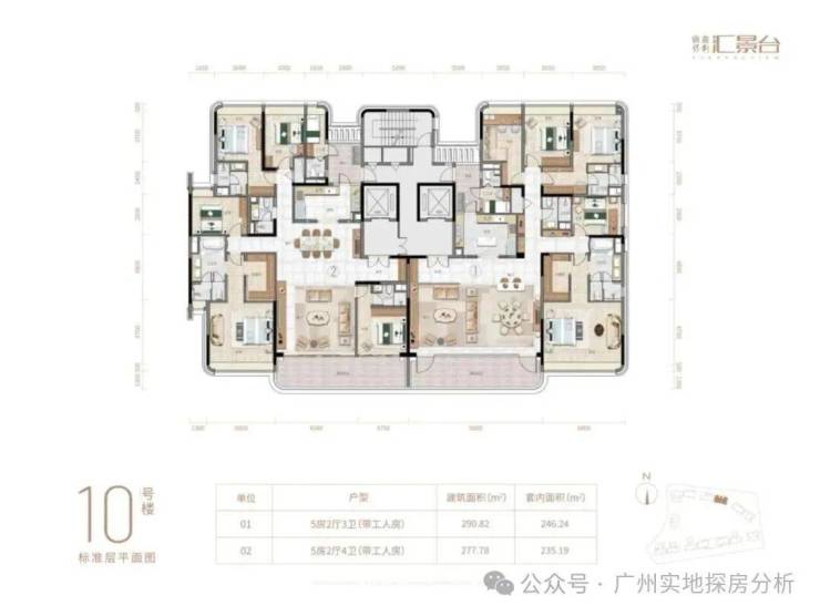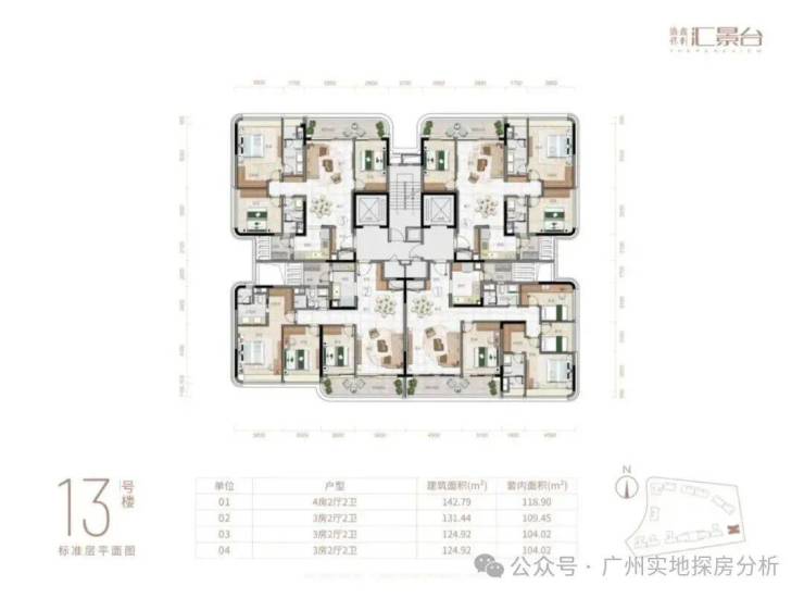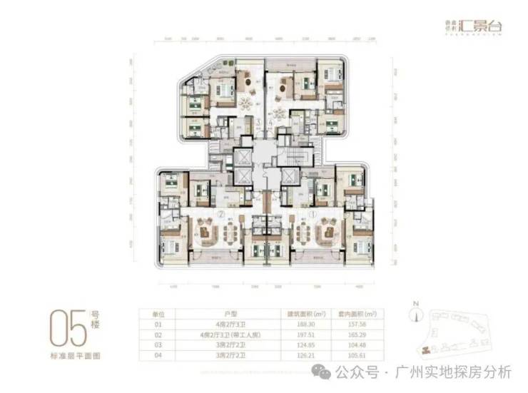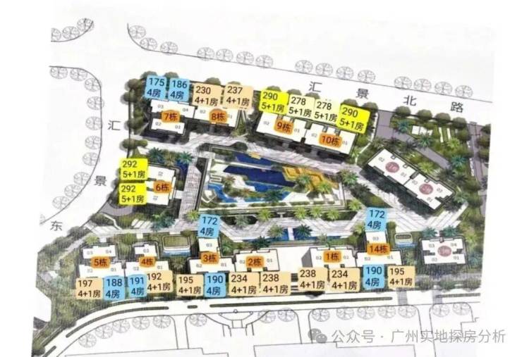 项目由14栋12层小高层组成,涵盖123-352㎡三至五房,共8类户型。