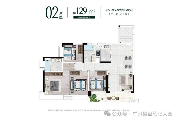 129㎡四房两厅两卫6.6m长南向观景阳台×超阔视野×四开间朝南×阔绰主卧套间