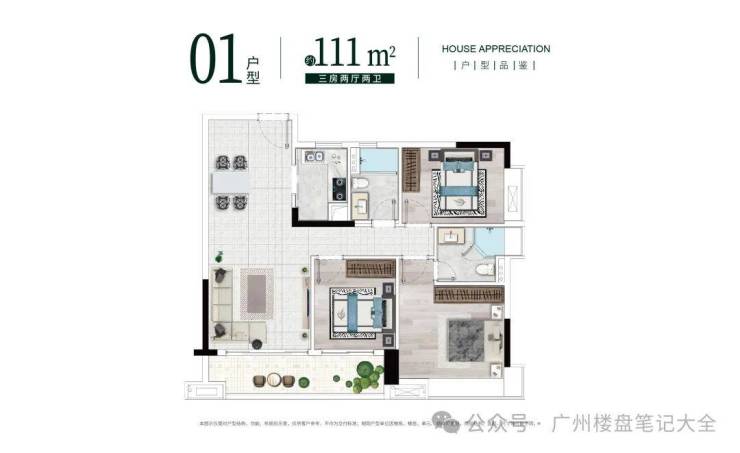 111㎡三房两厅两卫6.5m长南向观景阳台×三开间朝南×户型方正气派×阔绰主卧套间