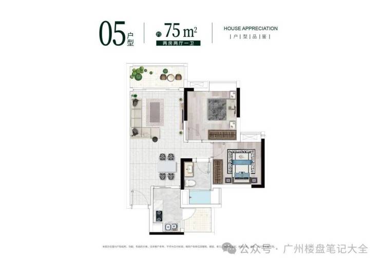 75㎡两房两厅一卫客餐厅一体化×动静分区×双阳台设计×揽尽广州塔城市夜景