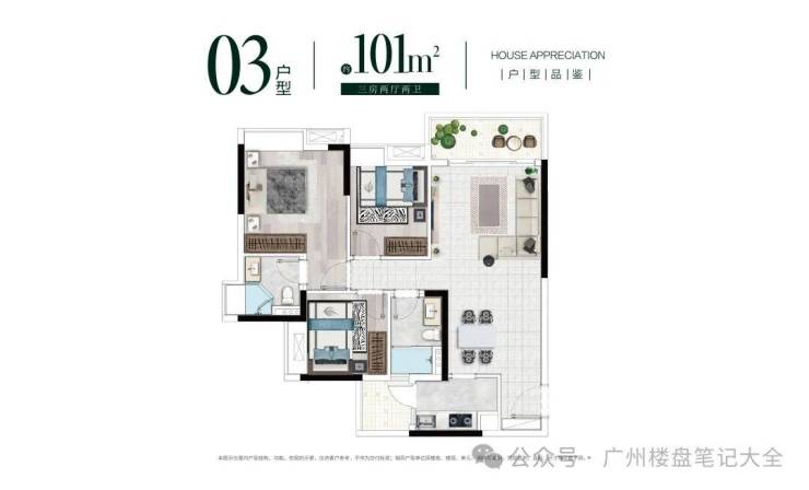 98㎡三房两厅两卫实用三房户型×带人户花园×南向观景大阳台×阔绰主卧套间