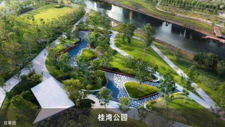 近揽以“城市客厅”为主体的公园、绿道、水体等中央生态体系,桂湾公园、前海演艺公园、前海石公园等自然簇拥,城市、人与自然无界交融。
