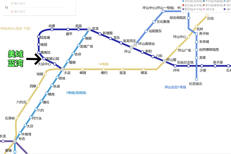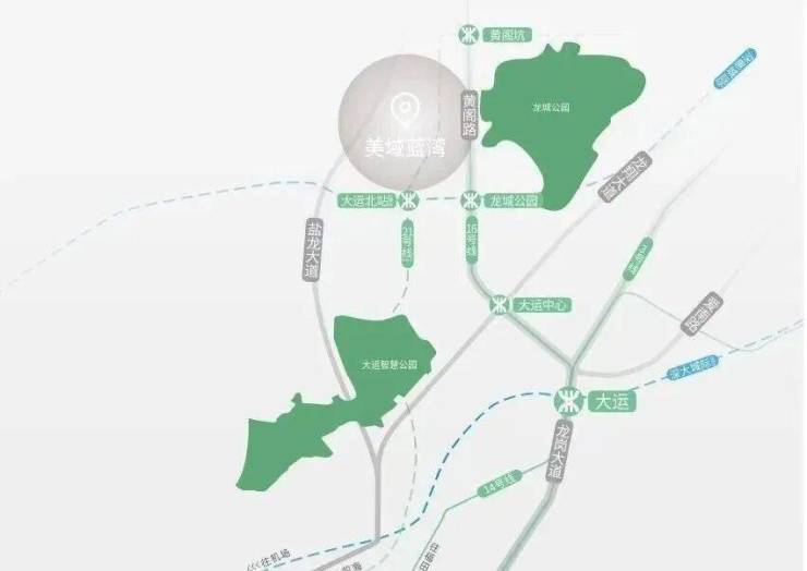 美域蓝湾距离深惠城际“大运北站”(在建)约1.3公里,16号地铁线“龙城公园站”约1.1公里,步行约15分钟即可到达,2站到大运枢纽站,可以换乘3/14号线,还有深大城际快线。