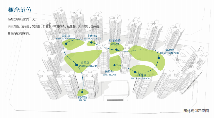 用艺术手法打造了一个一环两芯多点的园林景观空间,归家之路仿佛置身于大公园内,风景活色生香。