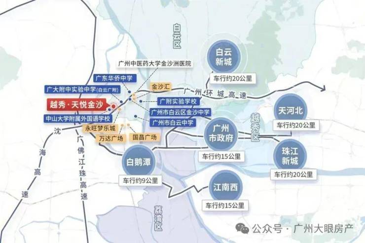 金沙洲的区位,其实都还行,横跨广州白云区和佛山南海区,临近荔湾,和广州的主城区相隔不远,尤其是广钢新城、白鹅潭、白云新城这些,对于不少人来看,这样的距离,是符合通勤距离的。