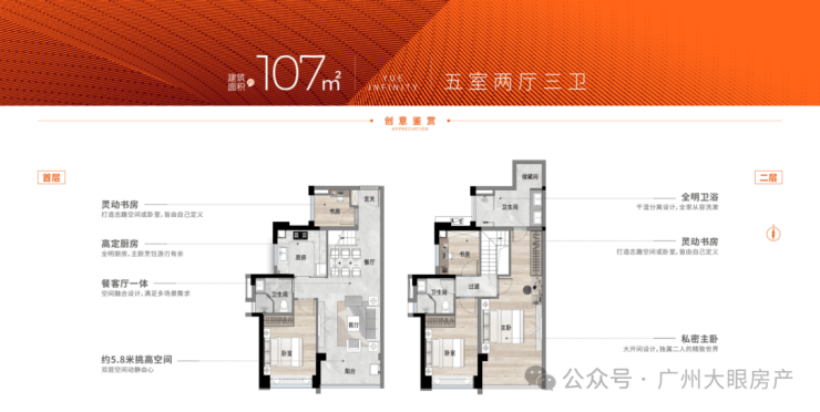 ✅高实用率高赠送:入户花园+飘窗赠送+上层可改豪宅级三进式大主套,98㎡住出 127㎡享受;107㎡住出140㎡享受,使用率达 130%
