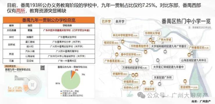 社区内配建27班公办幼儿园和45班九年一贯制公办广外附,均已开学