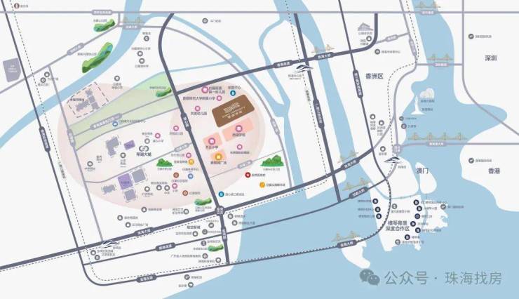 项目位于“西部中心城”先发区,东临鹤洲高铁枢纽,北接东湖新城核心区,扼守珠海西进“桥头堡”,由湖心路出发,可通过香海大桥等四座大桥快速抵达各城市核心区。