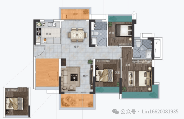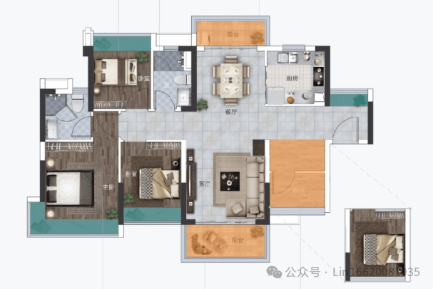 【阔绰户型】建面约95㎡3+1房两厅两卫