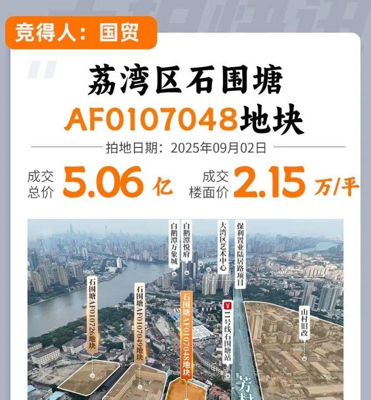 2025年9月2号,国贸5.06亿拿下石围塘地块,楼面价21473元/平。