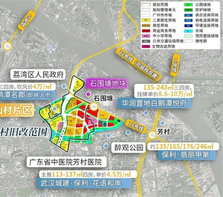 ·学铁商配齐,地块基本面有兜底,距石围塘站仅约200米+周边规划小学+一站万象城白鹅潭商圈;