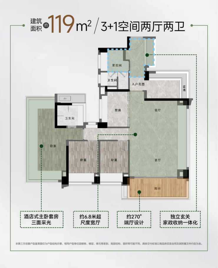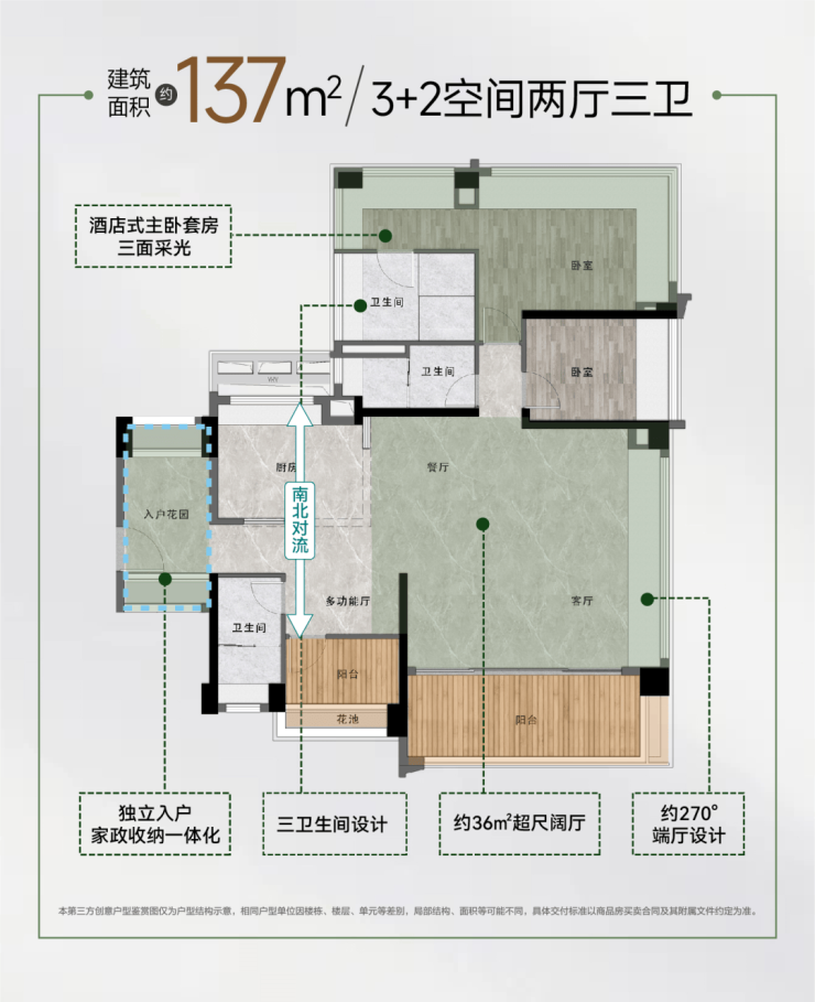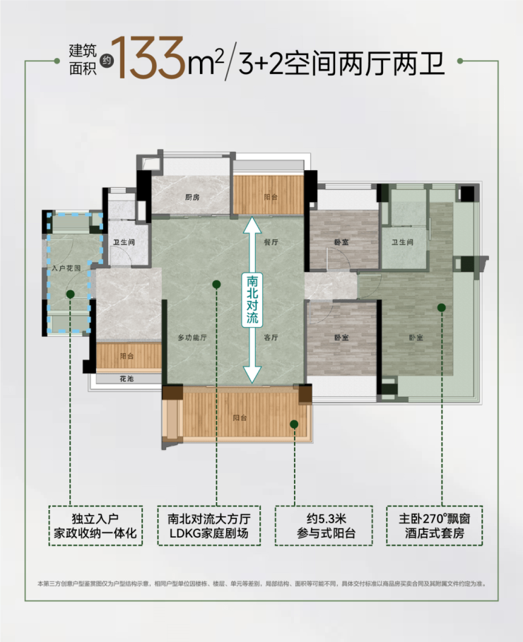 约5.3米参与式阳台|南北对流大方厅|主卧270°飘窗|酒店式主卧套房