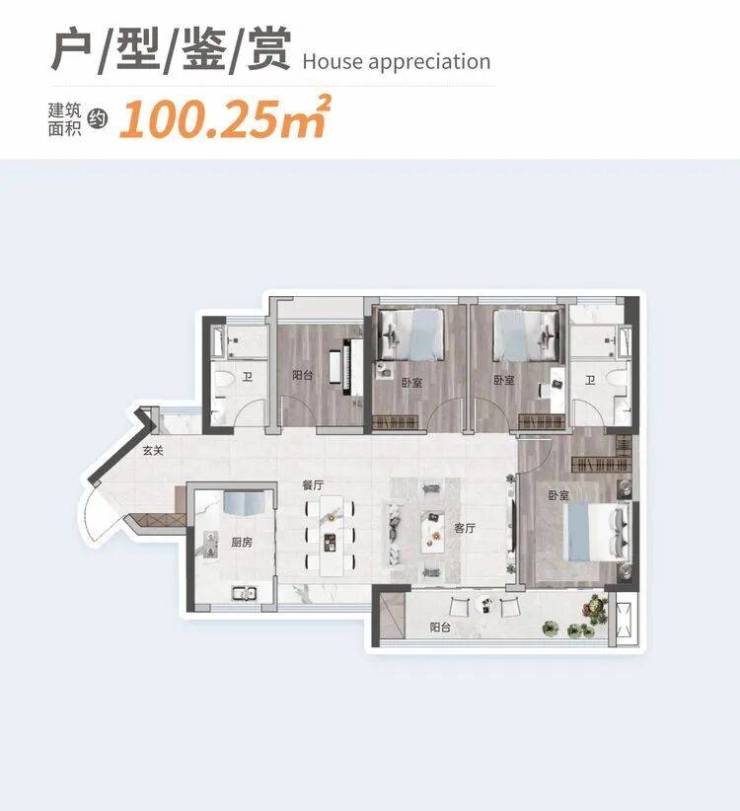 王牌户型【约84-101㎡ 3至4房2厅2卫】