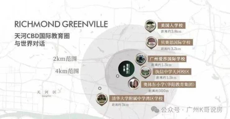 中学:执信中学天河校区、清华大学附属中学湾区学校、华师附外美式高中、广州奥林匹克中学、华南师范大学附属外国语学校