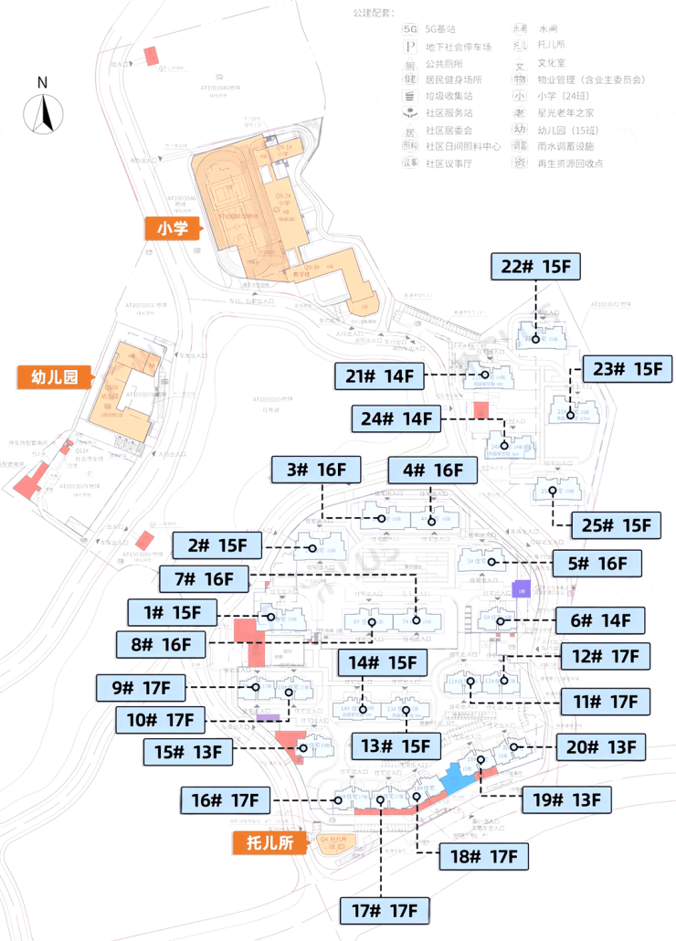 项目自配:15班幼儿园和24班小学,其中24班小学引进广州天河外国语教育集团合作办学。