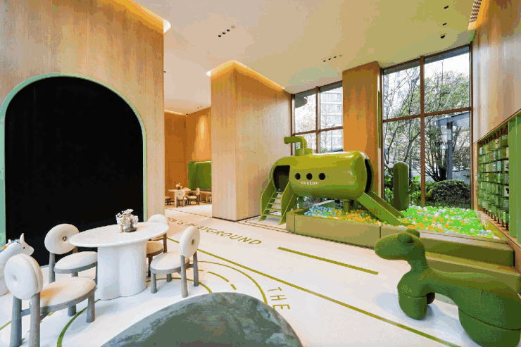为呈现一片与自然共生的成熟景观,团队历时数载精心选培,近30余株10米级大乔木及400余株全冠乔木,构建起原生森林的骨架。辅以60余种植物织就出的盐系、英式、森系等6大主题花境,在CBD脚下营造出浓荫蔽日、步移景异的四时意境。理想生活不仅在于景观视觉,更在于情感共鸣。东南亚度假感的热带风情泳池,为业主开辟出避暑港湾;超400㎡的主题儿童乐园,则让孩子在定制绿意中开启探索之旅。当呼吸融入林涛风语,身处其中,自在感知生命的轻盈与本真。