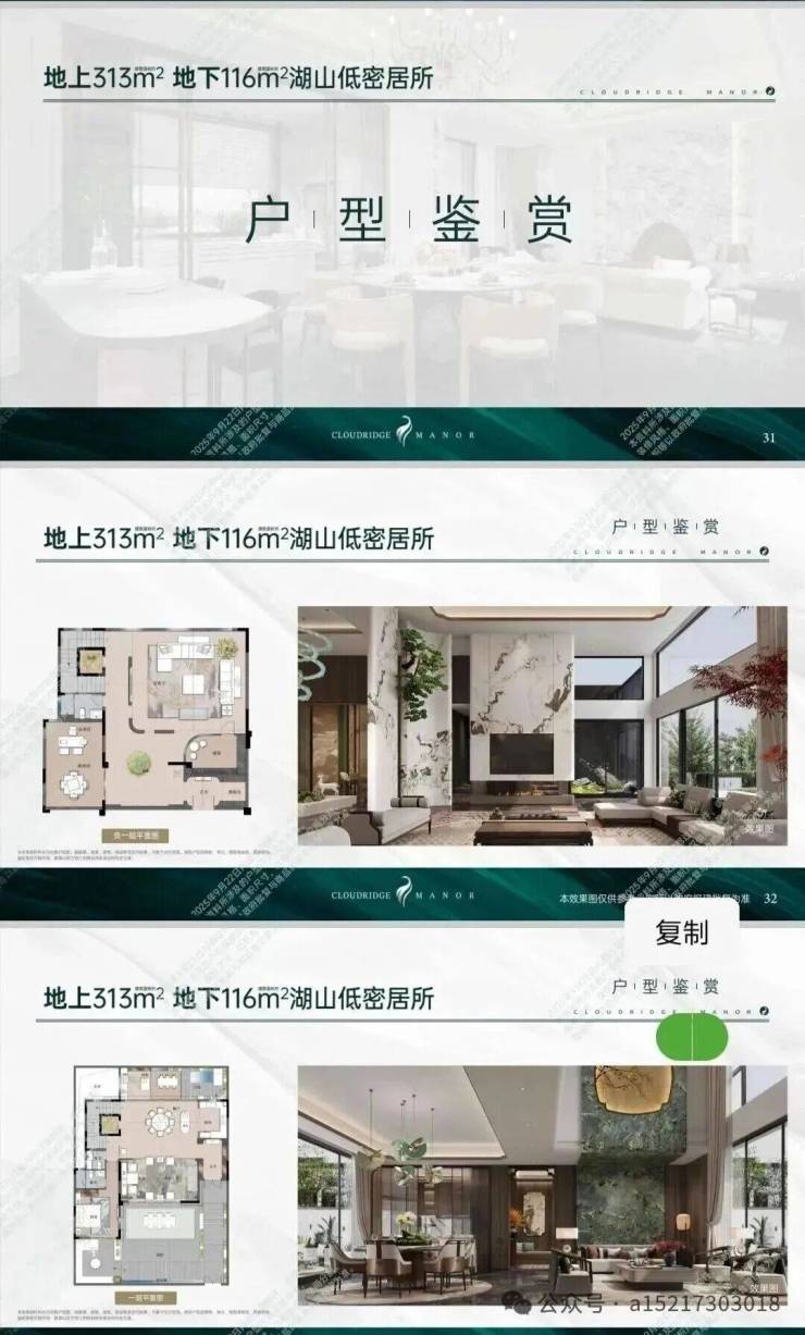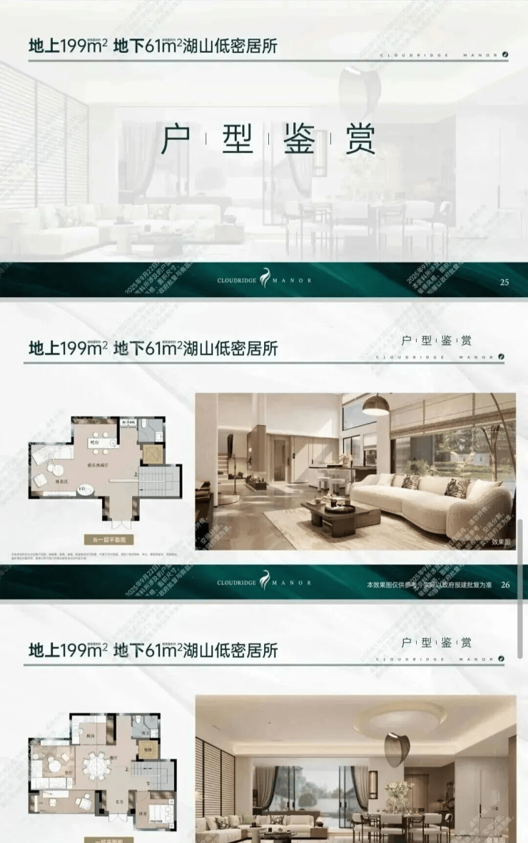 叠墅在售户型:地上199-377㎡、地下61-165㎡的“云缦”组团湖山低密别墅群