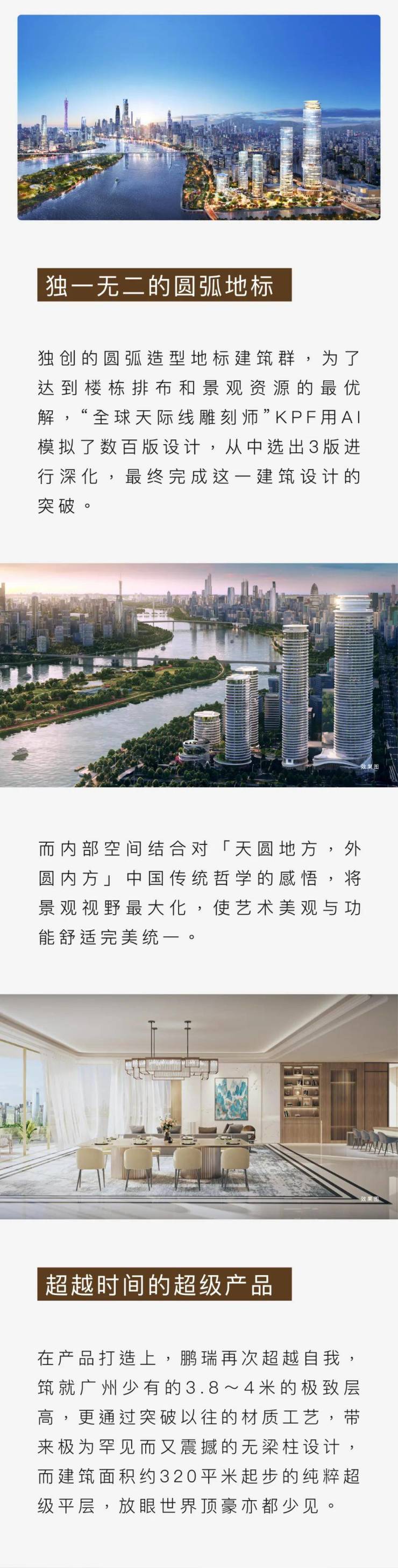 广州·鹏瑞1号的造型,设计灵感就来自于波光粼粼的珠江,采用“外圆内方”的造型也暗合中国的传统。(如上图)