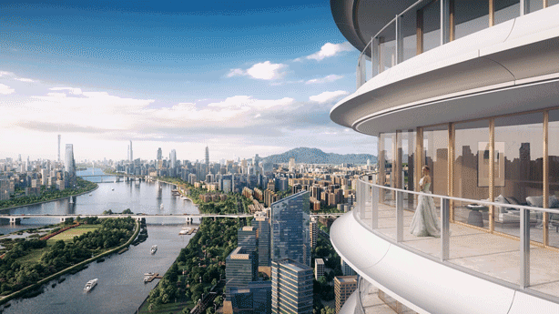外部圆弧造型优美,能实现江景最大化;而内部空间方正宽敞明亮,体现了中国传统文化的刚柔并济、和谐共生理念。不管是业主还是买家,都会买账。