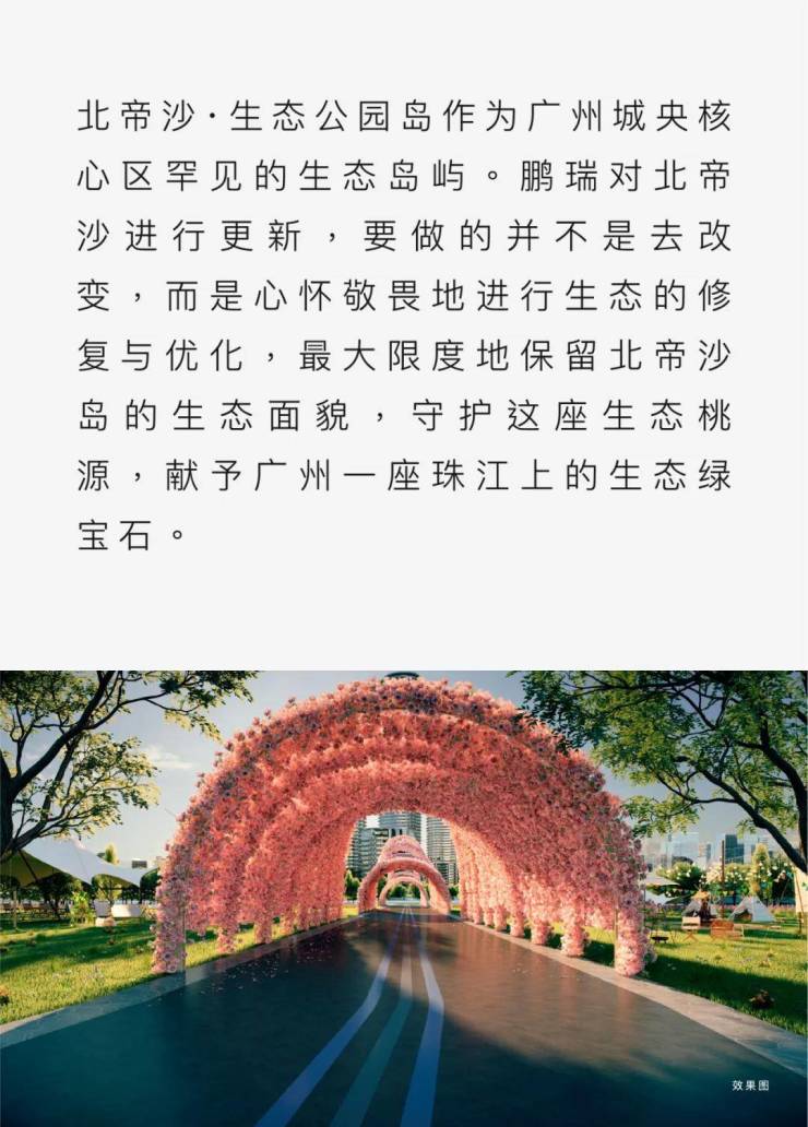 鹏瑞集团还取得了珠江江心岛北帝沙岛的经营权,这座与鹏瑞1号对望的岛屿将被打造成世界级的江心生态岛,为业主带来独特的体验。