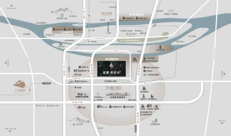 龙湖·御湖境坐落于万博CBD,这一地块作为番禺滨江的最后一块开发区,拥有得天独厚的地理位置。项目距离珠江新城仅20分钟车程,轻松畅享广州的核心商务区。万博CBD已经汇聚了众多甲级写字楼、商业综合体和企业总部,成为广州未来的重要产业与商务中心。随着区域的进一步发展,龙湖·御湖境的升值潜力巨大,是投资者和高端购房者的理想选择。