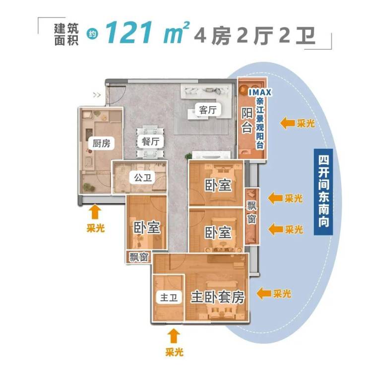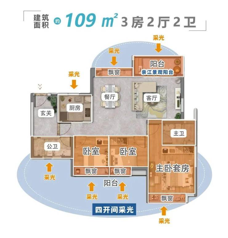 此次加推主要涵盖建面约80-143㎡二至五房,全南向户型,主力户型建面约109㎡全南名校主套三房、建面约122㎡天幕江景学府四房。离江50米的距离,无论是产品设计,还是景观视野,都堪称一流。