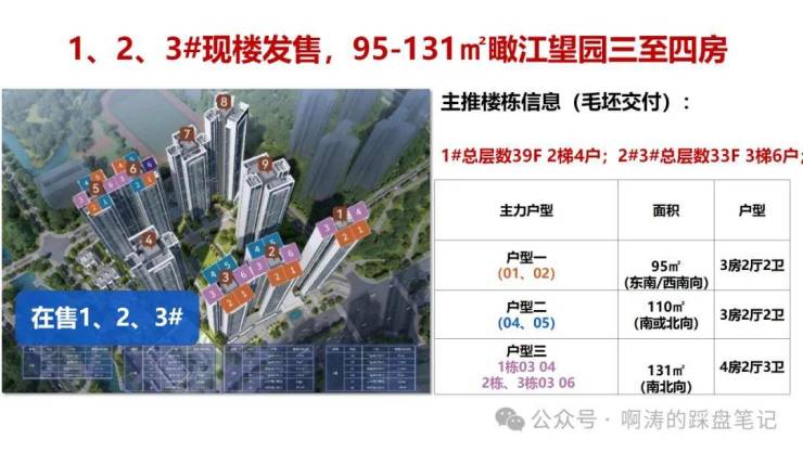 主力在售楼栋:1栋总层数 39F ;2-3栋 总层数 32F ;5-6-7栋总层数 33F ; 8栋总层数39F
