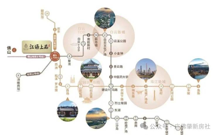 广州12号线、13号线、佛山8号线交汇,贯穿广州东西人文经济大动脉,广州五大区域核心版块无缝直达。