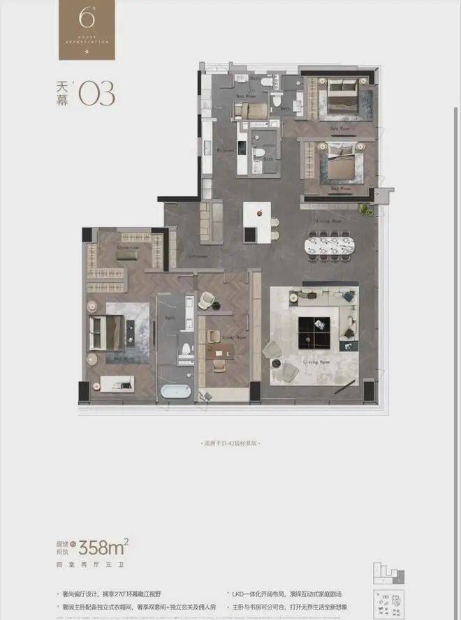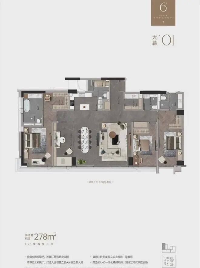 瑰丽级会所配置,涵括私密茶室、艺术展厅、沙⻰场域、雪茄室、读书室……在多功能社交场域,展现⼀个圈层的时代影响力。