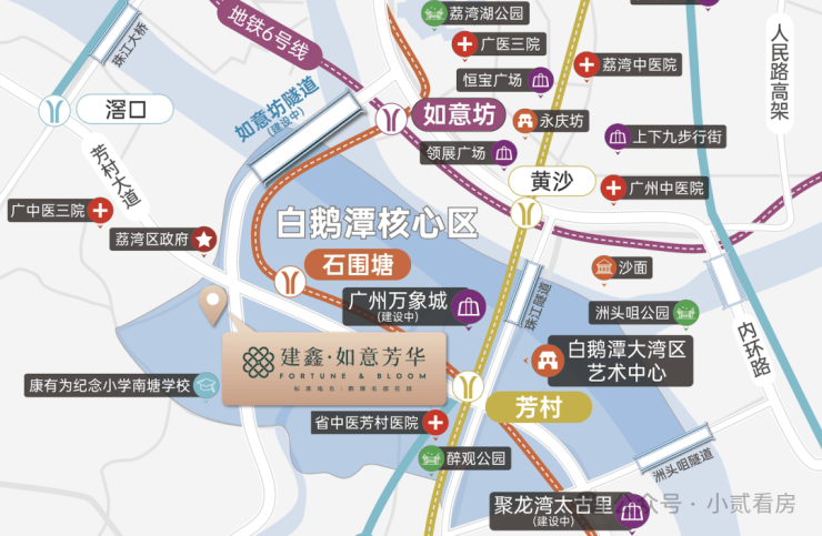 除了老荔湾的传统商圈,白鹅潭万象城预计明年年中开业,聚龙湾太古里也在紧锣密鼓建设中,这些高端商业体的落地将大幅提升区域的商业能级,为鹅潭名郡的业主带来更丰富的消费选择。