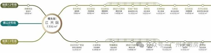 广州12号线、13号线、佛山8号线交汇,贯穿广州东西人文经济大动脉,广州五大区域核心版块无缝直达。