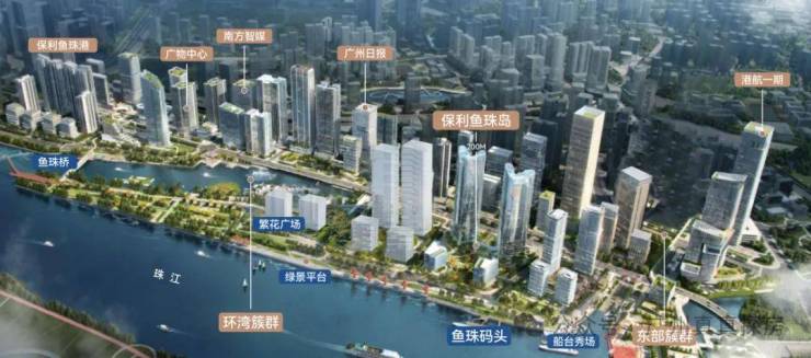鱼珠岛尖连片规划,将打造18公顷的世界级内湾公园与活力艺术水岸。鱼珠湾商务区是广州“两江东进”的桥头堡,与琶洲、金融城共同支撑着广州科技创新发展的“黄金三角”
